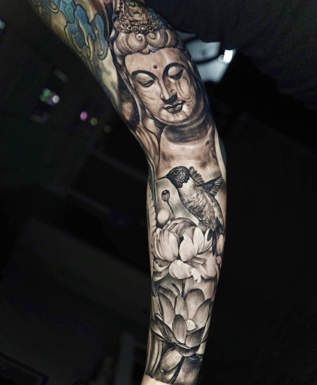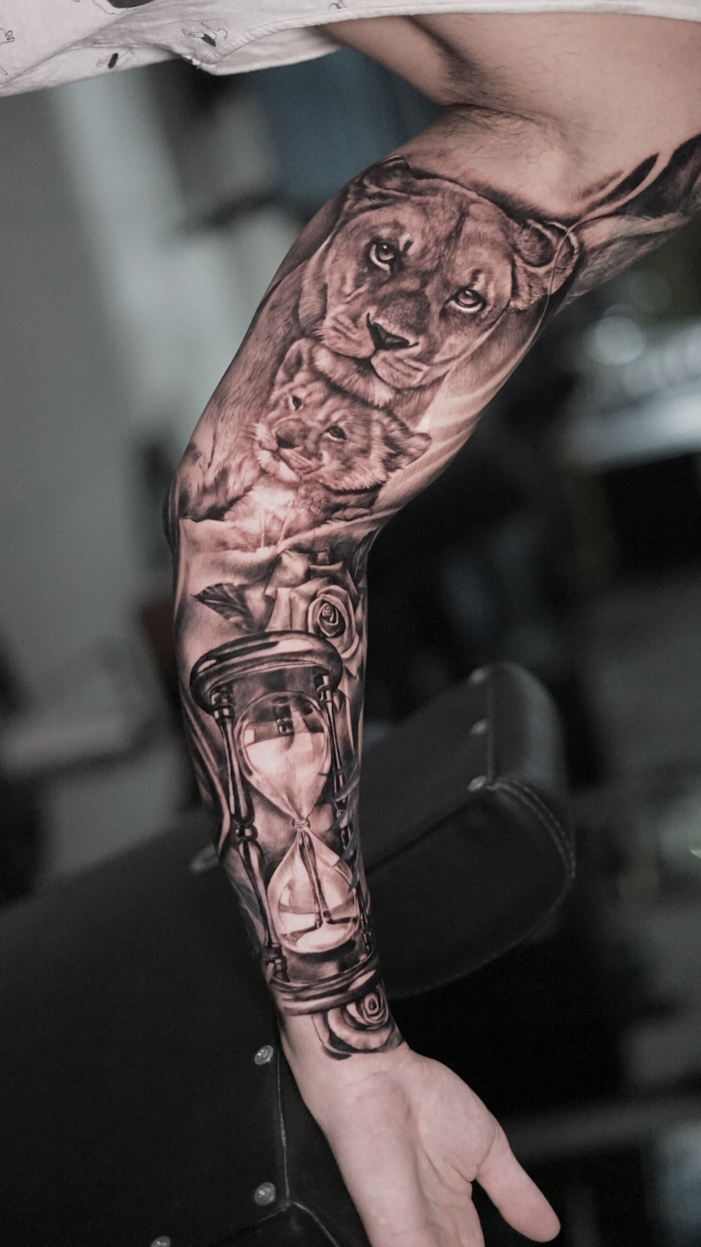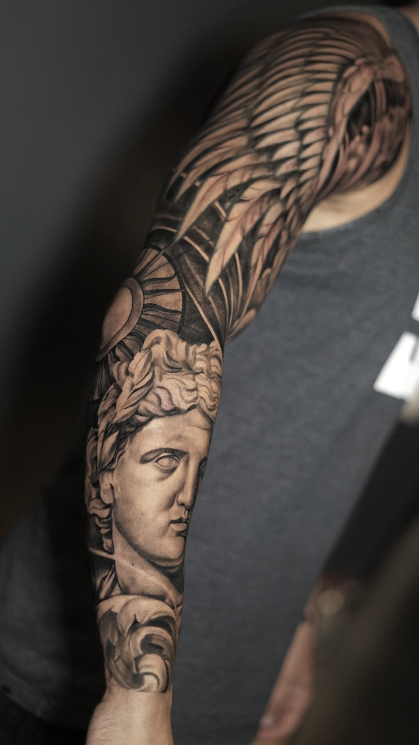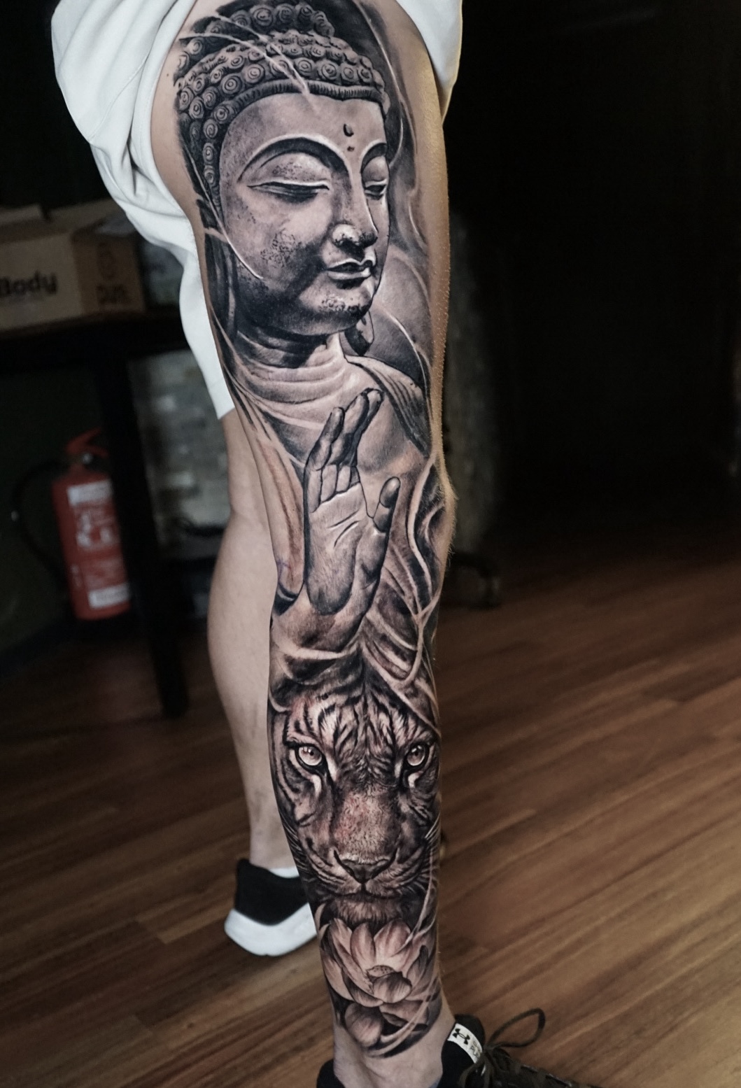 Reconocido por su especialización en mangas y composiciones corporales completas, cada diseño es creado considerando la anatomía, el movimiento y las proporciones del cliente. Su método busca lograr una fluidez natural, equilibrio visual y adaptación anatómica, permitiendo que el tatuaje se integre al cuerpo de forma armónica y mantenga su impacto desde todos los ángulos.