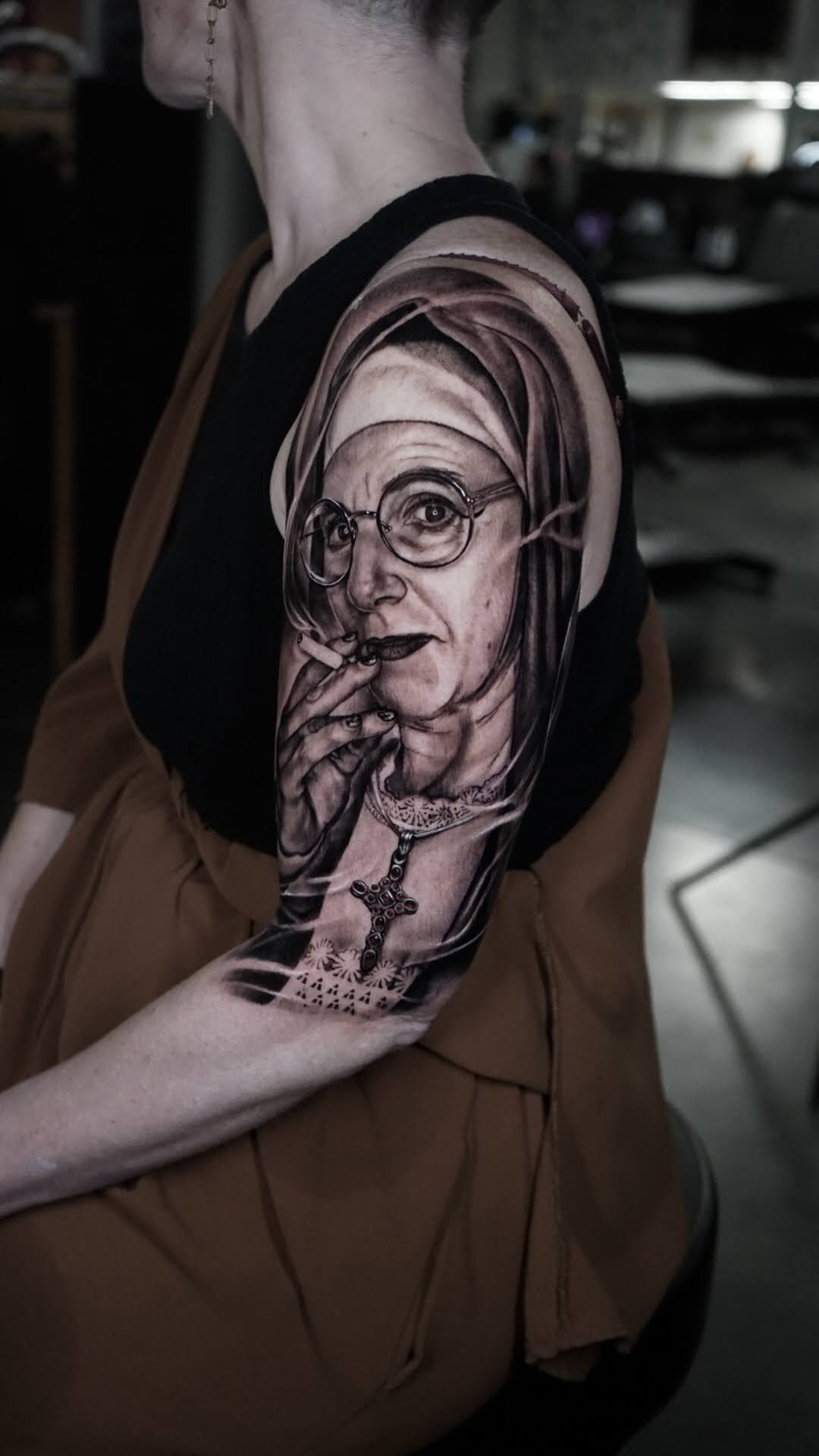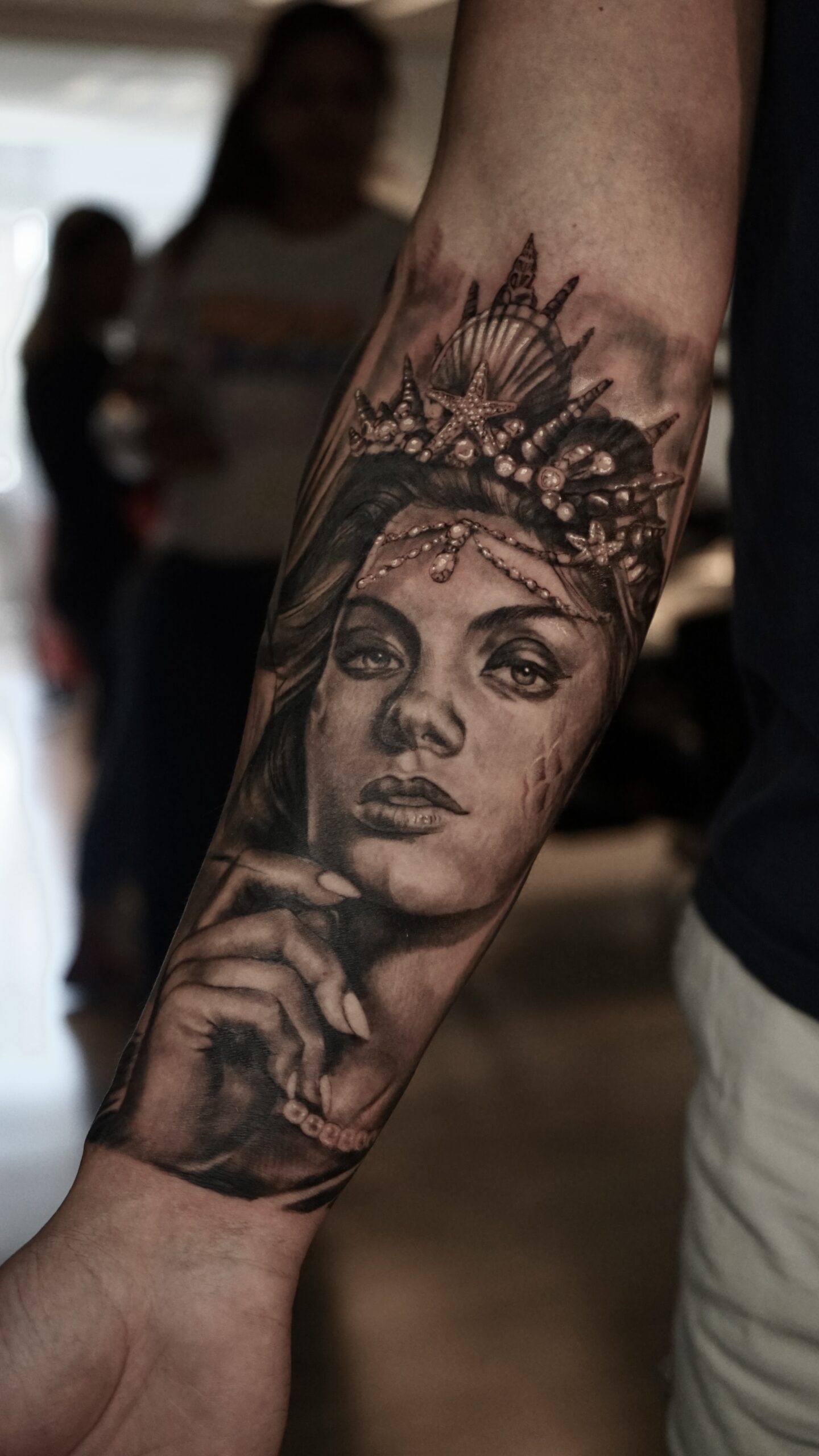 De la Cruz es un tatuador profesional con más de 15 años de experiencia, especializado en realismo en blanco y negro y proyectos de gran formato. Su trabajo se centra en la creación de piezas únicas, desarrolladas con un enfoque artístico y técnico que garantiza precisión, profundidad y durabilidad en el tiempo.