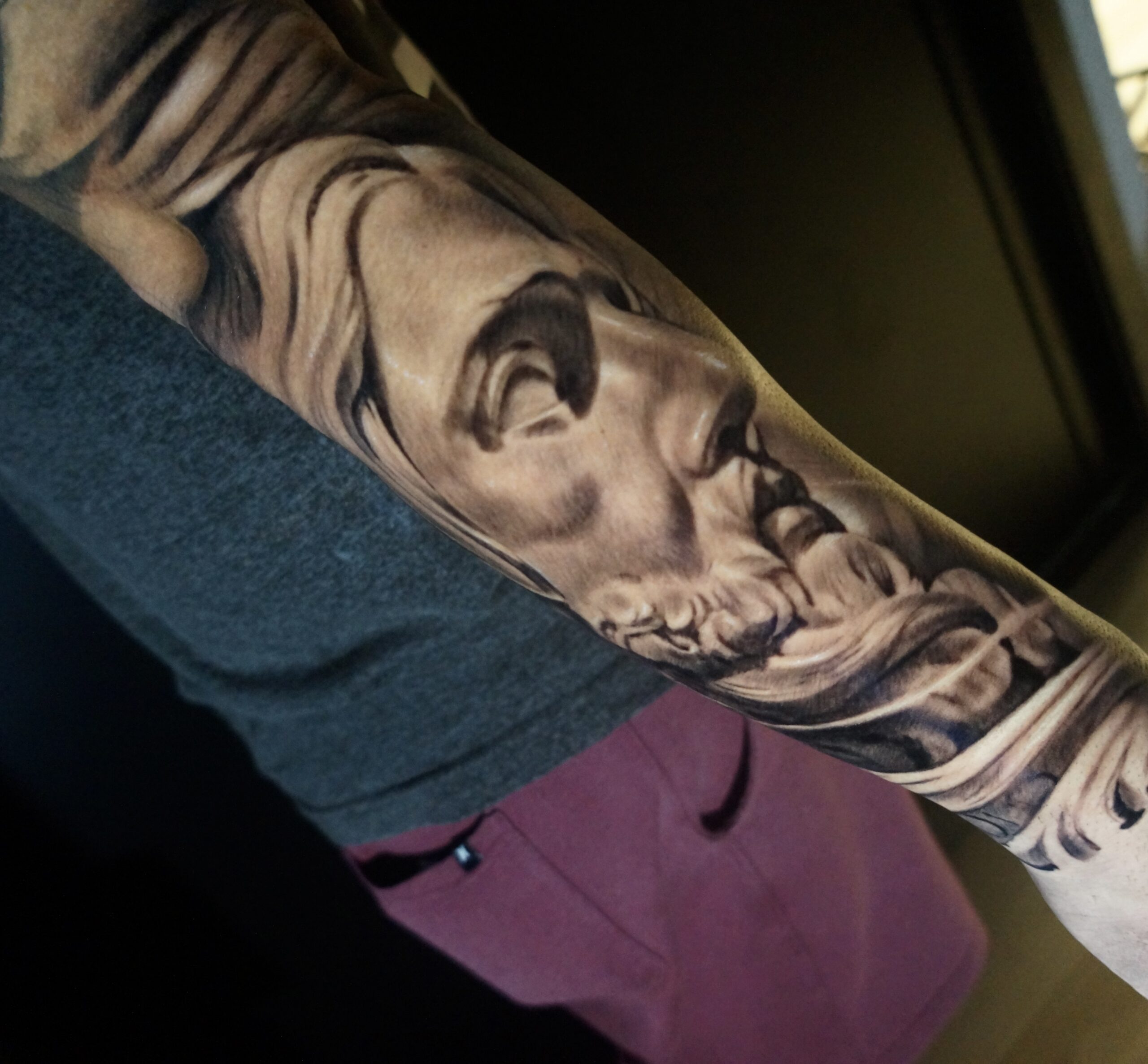 De la Cruz es tatuador con más de 15 años de experiencia y una larga trayectoria internacional. Se especializa en realismo en blanco y negro, habiendo adquirido valiosos conocimientos y habilidades a lo largo del tiempo. Le apasiona la calidad y la excelencia, y se esfuerza por ofrecer lo mejor en cada uno de sus trabajos.